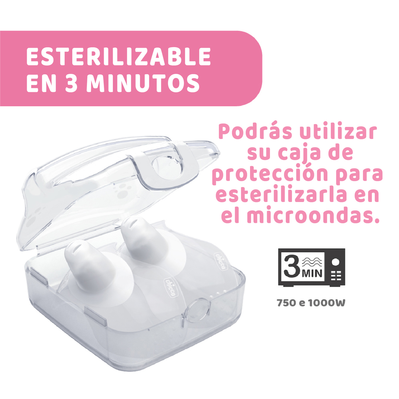 Las pezoneras pueden ser esterilizadas en el microondas directamente en su estuche.