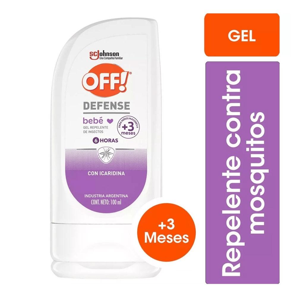 El repelente Off! Defense Bebé Gel 100 ml ofrece una protección eficaz con Icaridina al 10 %, ideal para niños mayores de 3 meses. Su fórmula no grasa se absorbe rápido y deja una sensación cómoda en la piel. Está diseñado para repeler mosquitos que pueden transmitir enfermedades como dengue, Zika y chikungunya. Viene en formato gel fácil de aplicar.
